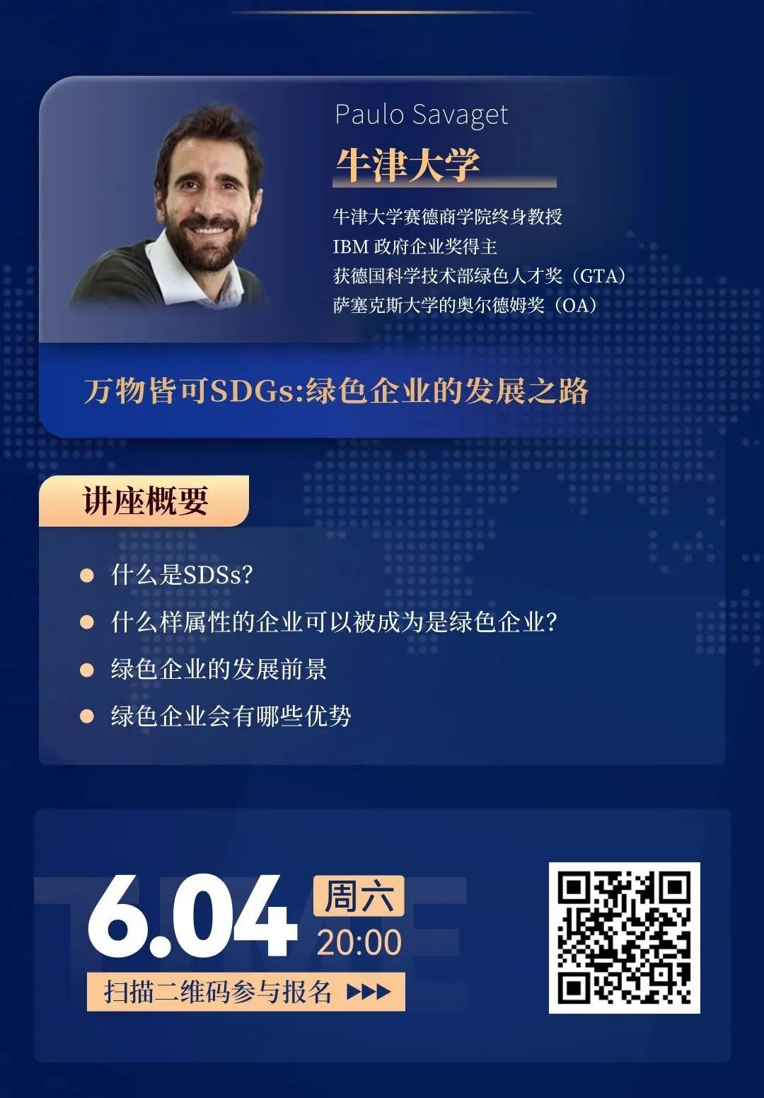 6月4日将开展前沿交叉学科主题讲座,邀请来自牛津大学的Paulo Savaget教授进行分享,带领大家探索绿色企业的发展之路。讲座面向我校全体师生开放,欢迎广大师生积极报名参与!