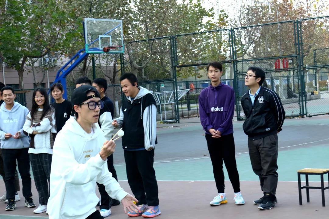 为了使成员间尽快熟悉,我们采取了一系列趣味游戏,来提高大家的默契度:第一个游戏,绕圈跑。同学们都出色地完成了任务,取得了优秀的成绩,大家互相配合,为彼此加油打气。
