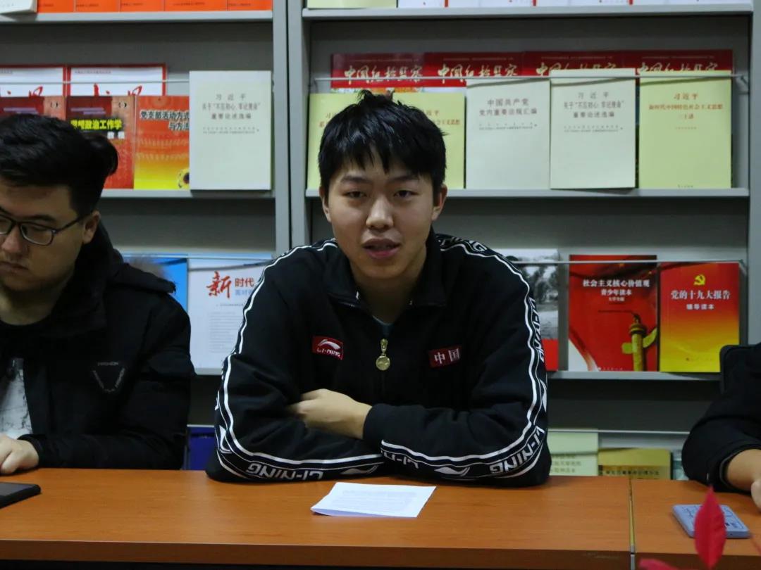 英语实践社社长田长浩向同学们积极分享参加英语学习座谈会的收获。他体会到了学习英语是一个需要坚持不懈的过程,要结合遗忘曲线,运用多种感官,通过联想对比,多写、多读、多见面,培养良好的语感,养成良好的习惯。