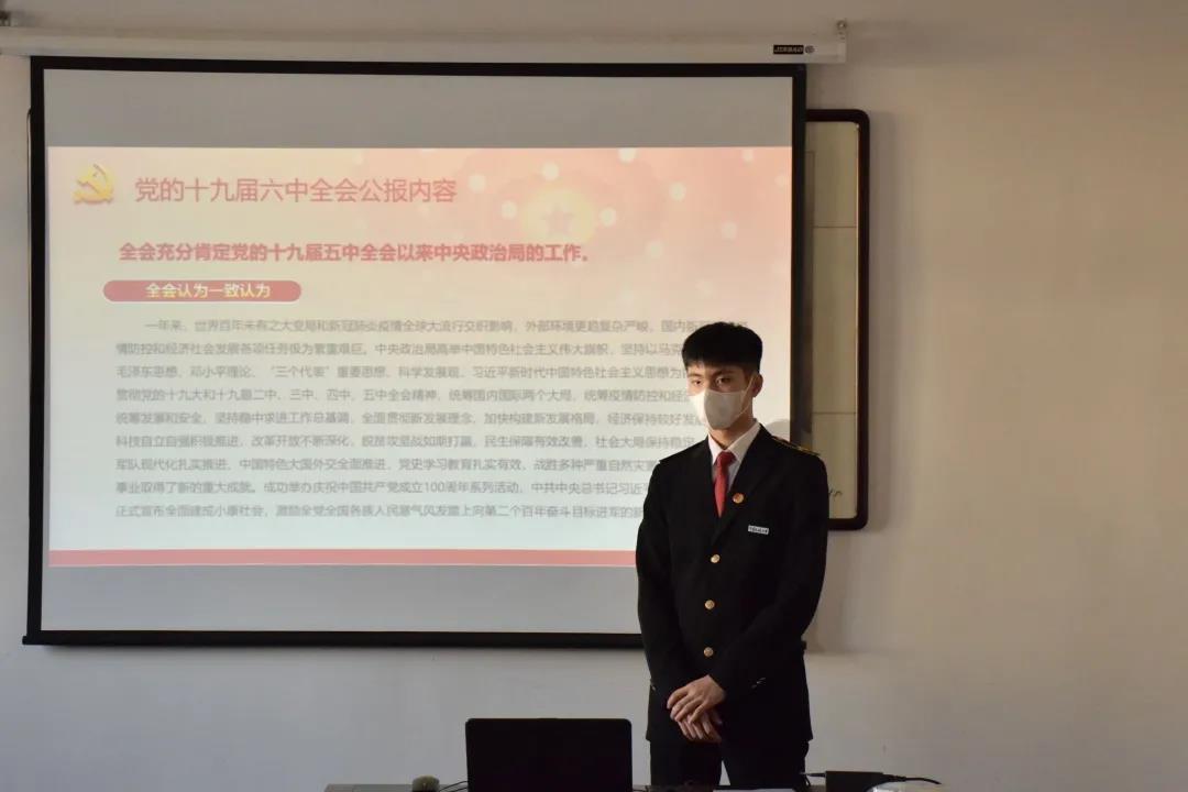 为深入贯彻学习党的十九届六中全会精神,推动高校学生进一步坚定理想信念,深刻理解会议精神内涵,厚植爱党爱国情怀,11月26日,职业技术学院团委组织学生会、团委办公室、社联社团学生骨干集中学习十九届六中全会精神。