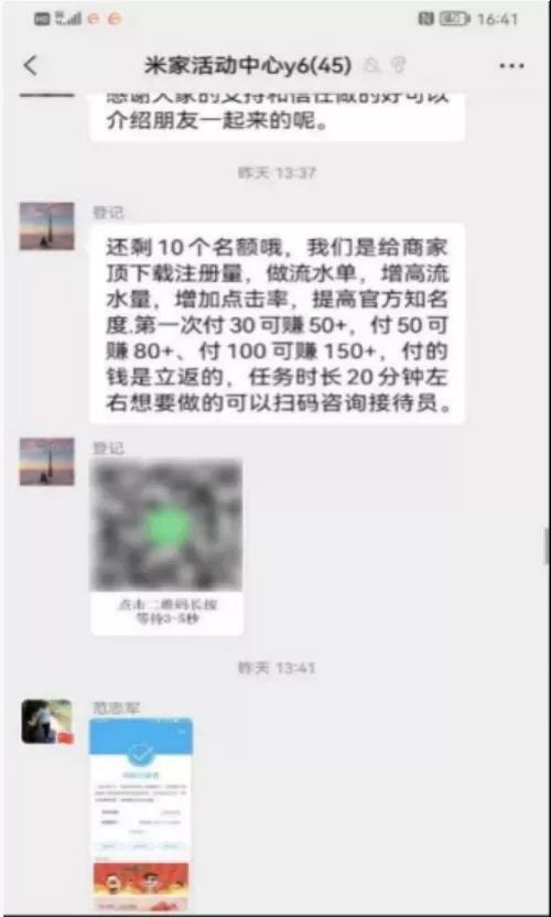 提高防诈意识请下载国家反诈中心APP、云剑卫士APP。在此提醒大家,任何形式的刷单都是违法行为,所谓“网络刷单”纯属诈骗,不要被蝇头小利所迷惑,想要兼职请通过正规渠道。
