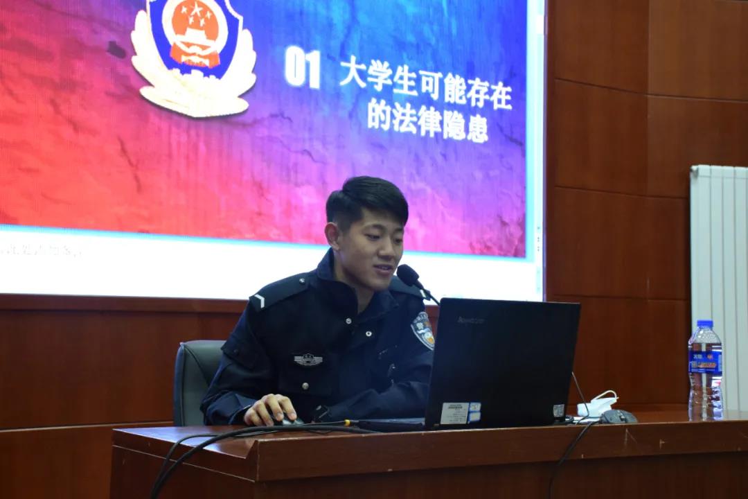 随后,以大学生可能存在的其他法律隐患为切入点,用通俗易懂、简单实用的法律知识,解读了一个个生动鲜活、触目惊心的大学生常见犯罪案例。讲座在轻松愉悦又不失一丝严谨的氛围中,进一步增强了同学们的政治责任感、法律责任感和社会责任感。