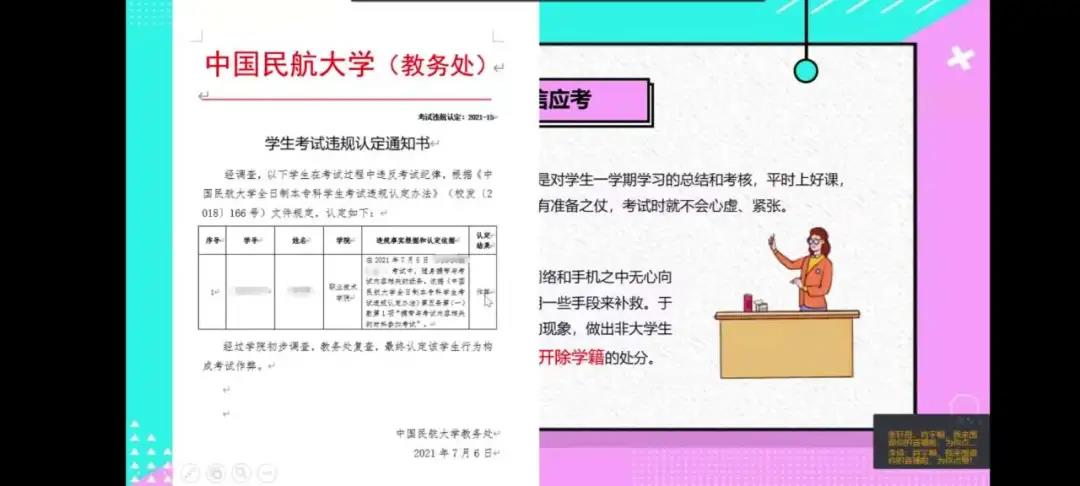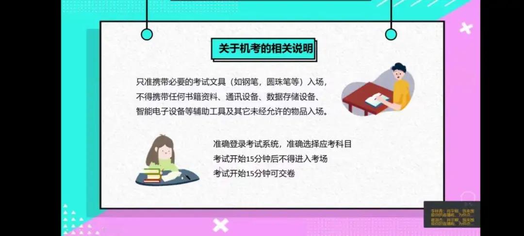 2.她强调考试时要提前15分钟到达考场,向监考人员出示学生证、学生卡和身份证等相关考试证件。如果证件发生遗失,及时补办或者开具考试证明。