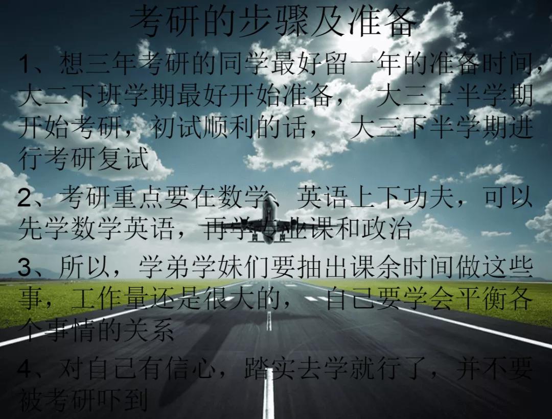 分享会开始,陈浩然学长首先向同学们进行了自我介绍,接下来结合自身的考试经验进行了细致的讲解。学长的大学经历分为两个重要阶段:自考升本科考试和研究生考试阶段。