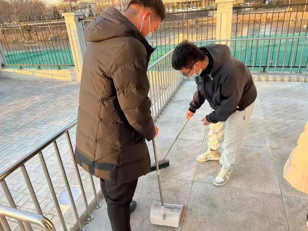 寒天催日短,今日,在铺满夕阳灿烂光芒的天空下,勤劳的同学们开始了对地铁站的清扫。在本次活动中,同学们人手一把扫帚,先确定了各自的清扫范围,然后快速地投入到劳动当中。他们将地铁站门口的散落零件捡起,整理好后放在同一地点,还将台阶和过道上的碎土灰尘集中到一起,在全部清扫完毕后,进行统一处理。夕阳温馨的光辉洒在同学们认真劳动的身影以及扫完之后干净整洁的地铁站入口上—这样的画面总让人心生暖意。