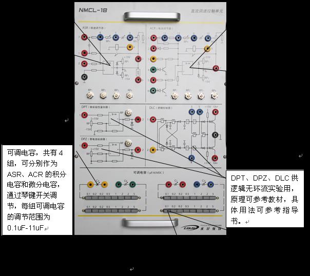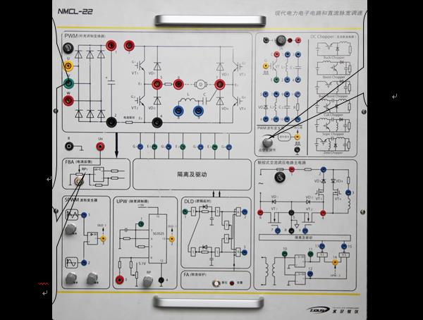 提供若干电阻、电容、电感等元件,参考面板上的不同斩波电路原理图接线。提供的直流电源为15V,带有熔断器保护。