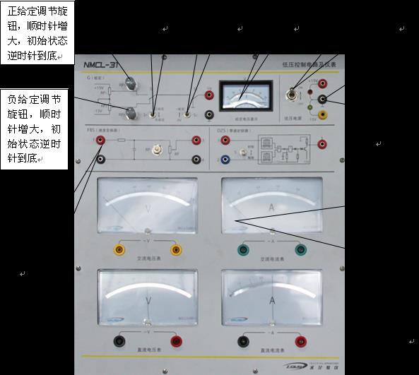 1、合上漏电保护器。此时红色断开指示灯亮。控制屏上所有单相电源有交流220V电压,控制交直流仪表的电源、所有挂件电源均得电。