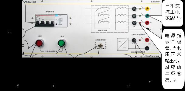 电源控制屏:对整个实验台的电源进行控制,并通过隔离变压器输出三相交流电源。