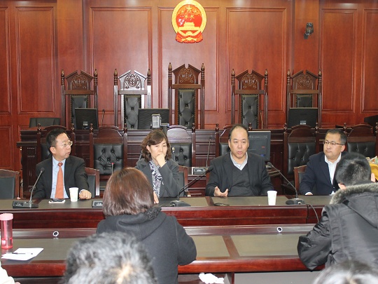 在校期间,吴桐水就中国民航法的立法和司法实践现状、航空法的前沿理论研究和热点问题等与来宾进行了深入的研讨。聂颖一行还饶有兴趣地参观了我校新建的数字化模拟法庭。