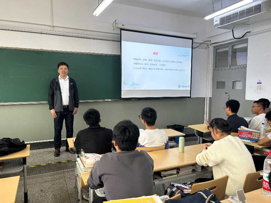 学术报告结束后,两位工程师分别与《航空发动机机队管理》和《航空发动机设计与维修》课程组的老师们进行了教学研讨,针对专业课程建设、校企联合申报本科毕业设计题目和大学生创新创业项目、结合企业需求开展科研项目合作等方面做了深入的讨论交流。此外,王伟工程师参加了2024级本科生主题班会,回忆了自己在中国民航大学的学习经历和在南方航空工作以来的成长历程。针对大一学生在刚进入大学时的不适应、对新的学习生活以及对未来发展所存在的种种疑问,他强调要在大学期间努力提升自身的知识、能力和素质水平,在学习理论知识的同时,更重要的是掌握解决工程复杂问题的技能和形成终身学习的意识。