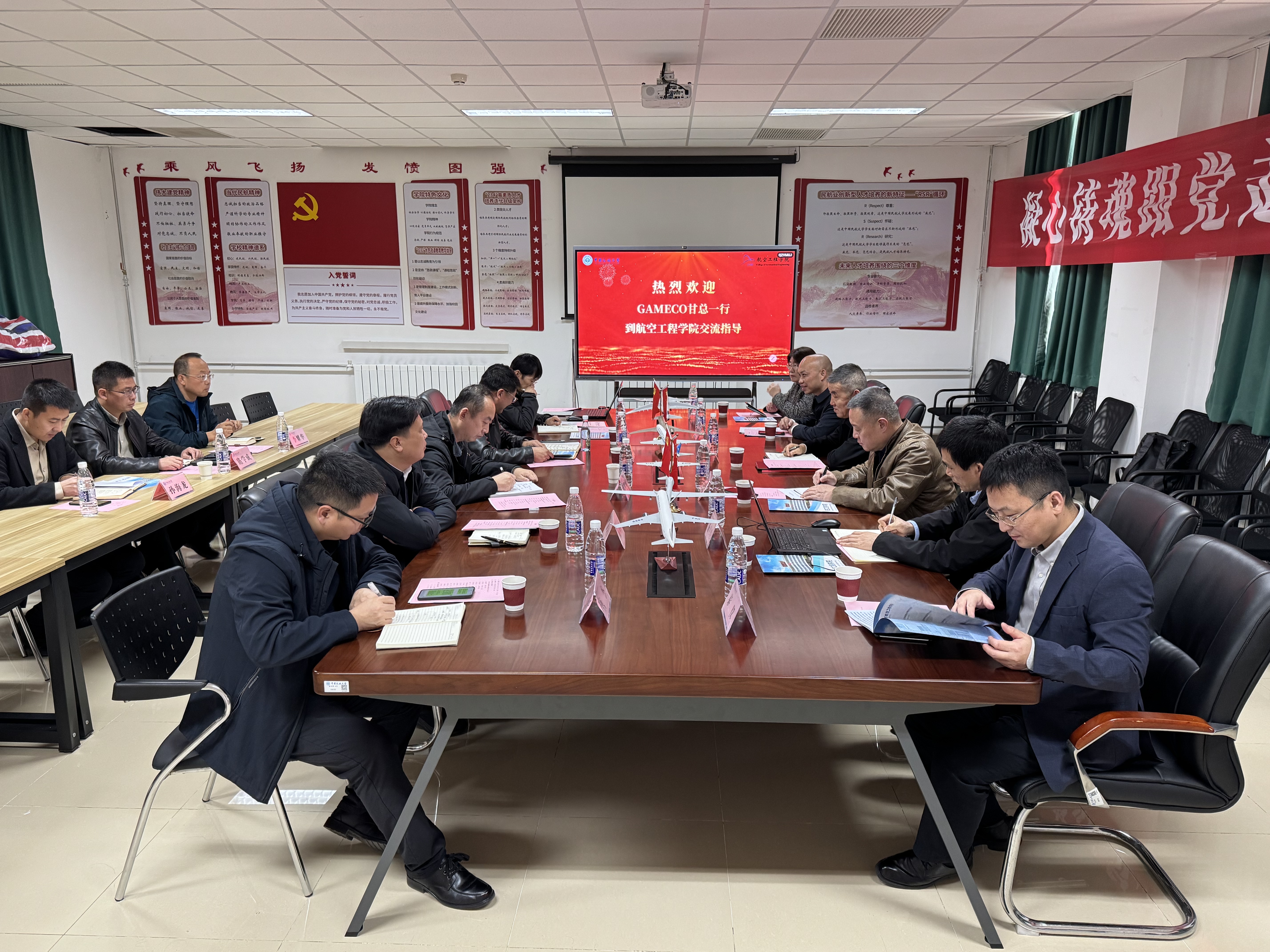 2025年10月27日下午,航空工程学院在北教二314接待来访的广州飞机维修工程有限公司(GAMECO)副总经理甘拥军一行,学院领导、各系、学工办主任参加座谈。