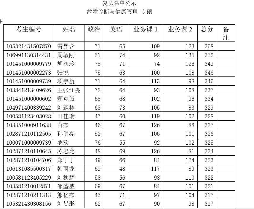 故障诊断与健康管理复试名单公示调剂(学硕)