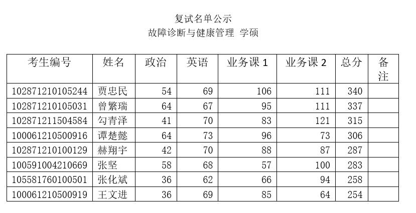 故障诊断与健康管理复试名单公示调剂(专硕)