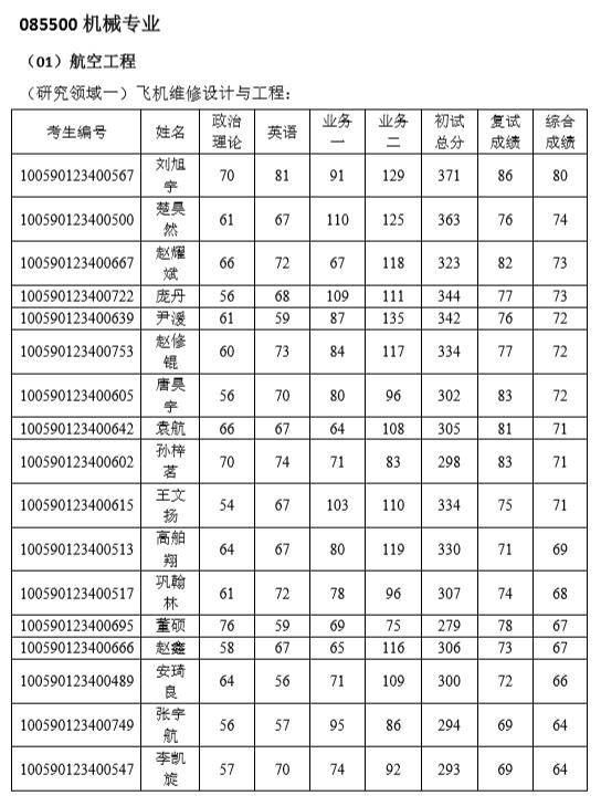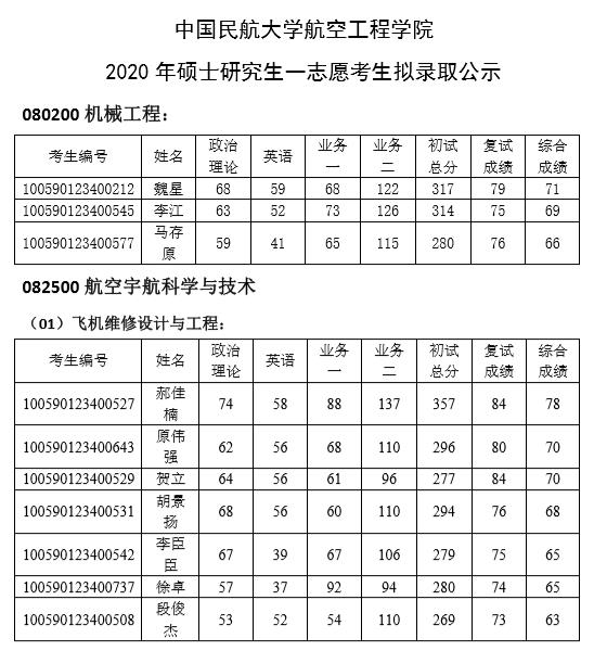 2020年航空工程学院硕士研究生一志愿拟录取考生名单公示.doc