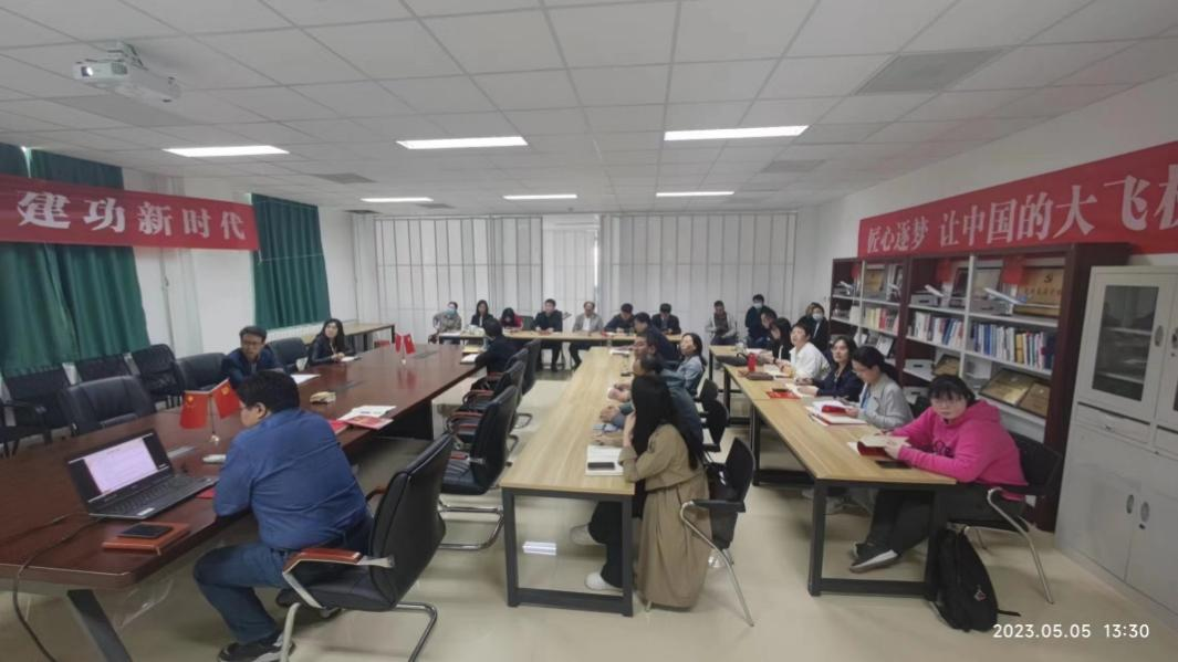 5月5日下午航空工程学院飞机系党支部开展“学思想、强党性、重实践、建新功,党建引领专业建设”主题党日活动,副校长杨新湦、教务处李佳老师和飞机系全体教师参加。