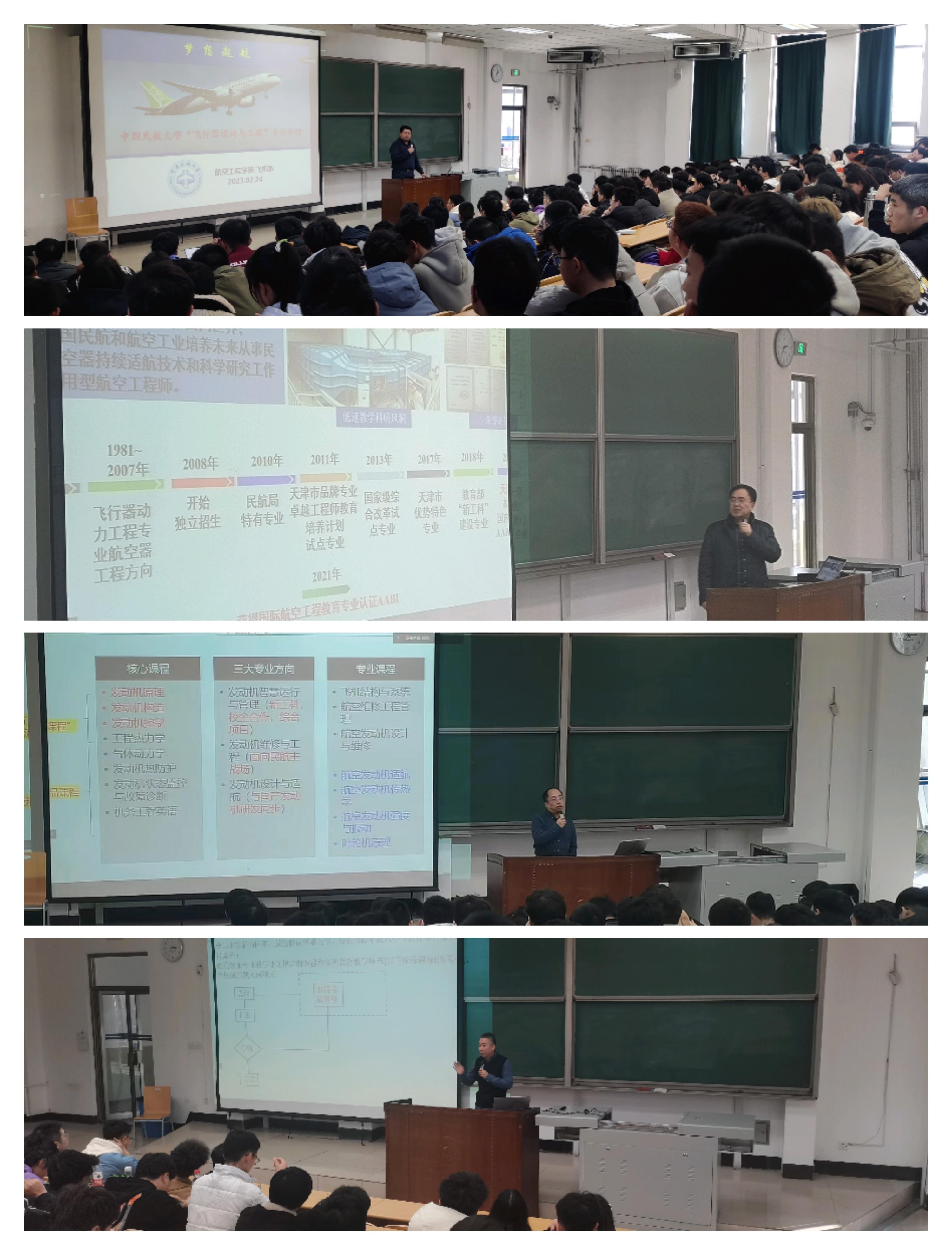 针对航空工程学院2022级全体学生,航空工程学院已圆满完成飞行器动力工程等六个专业的宣讲教育活动。今后将继续在校院党委的领导下,落实立德树人根本任务,以教育强国建设为目标,以全面提高人才培养质量为重点,深入巩固“三全育人”工作成果,继承发挥大类培养的优势,通过组织专业宣讲教育,激发学生专业兴趣和专业学习的热情、动力,精准发力,不断提升人才培养水平,为教育教学工作高质量发展奠定基础,与中国民航同呼吸共命运,支撑并践行“建民航、兴民航、强民航”的初心使命。