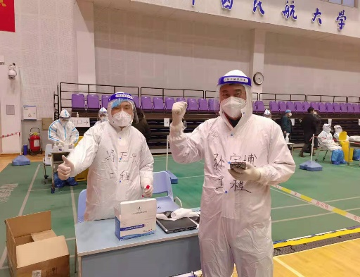 自1月9日启动大筛工作以来,工程学院教师志愿者顶严冬、战寒风,为学校和家属区的师生们服务,体现出无私奉献的精神。孙宇博和冯正兴老师作为其中的两名代表,在学校号召党员冲锋在前、勇于担当时,第一时间申报了防疫志愿者,并立即投身防疫工作。他们在几次大筛工作中共服务在校师生千余人次,每次持续工作近6个小时,为圆满有序地完成学校筛查工作贡献力量。冯正兴老师家中有一个刚满6个月的孩子,孙宇博老师家中有2个停学在家的孩子,其家人希望两位老师能在困难时期留在家中帮忙照顾,但当两位老师听到学校号召后,义无反顾地冲在了抗疫第一线。其中,孙宇博老师更是在前年接受了腰椎手术的情况下,一直在带着护腰持续奋战几个小时,进行不间断的工作。正是由于防疫志愿者们的无私奉献,在校师生才得以恢复平稳有序的学习和生活。