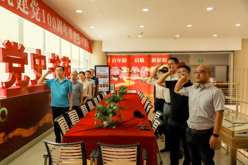 讲解结束后,全体党员在习近平总书记的领誓下,面对党旗庄严宣誓。