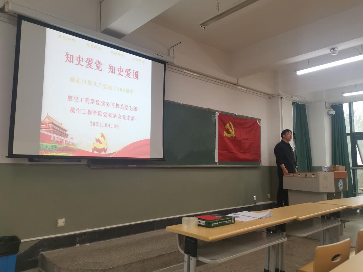 为深入贯彻党的十九大精神,着力推动基层党组织建设,落实航空工程学院党委提出的“11234567”总体工作布局,航空工程学院飞机系党支部和航空工程2018级延安党支部于2021年4月2日联合开展了党日活动。此次活动的主题为:学习《论中国共产党历史》,加强师生联合培养党员。活动由师利中和刘禹铭两位党支部书记共同主持。