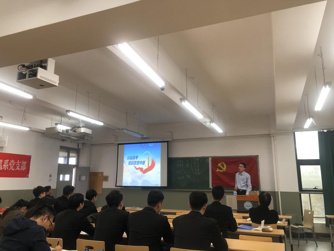 教师党员张志强同志、耿亚南同志进行了微党课分享,其中教师张志强同志就“恢复高考,知识改变命运”的主题进行了演讲,他说到,高考的恢复让成千上万的人看到了希望,迎来了尊重知识、尊重人才的春天,真正培养了无数的高素质专门人才。学生宋英杰同志说到,我们党的一百年是矢志践行初心使命的一百年,是创造辉煌开辟未来的一百年,必须把党的历史学习好、传承好、发扬好。耿亚南同志的微党课主题是“缅怀王伟”,她讲述了王伟同志20年前驾驶“81192”战机为国家安全献出生命的历史事件。