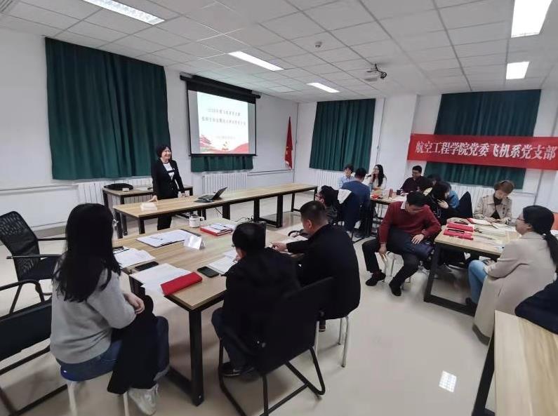 在召开组织生活会和开展民主评议党员前,飞机系党支部组织全体党员认真学习了党的十九届五中全会精神、《习近平谈治国理政》第三卷、习近平总书记在全国抗击新冠肺炎疫情表彰大会、习近平总书记在全国教育大会上的讲话、习近平总书记在全国高校思想政治工作会议上的讲话等。通过集中学习,全体党员加深了对习近平新时代中国特色社会主义思想的领会,加深了对“十四五”时期我国经济社会发展目标任务的了解,加深了对党中央加强基层党组织和党员队伍建设有关要求的把握,为开好组织生活会和开展民主评议党员打牢了思想基础。