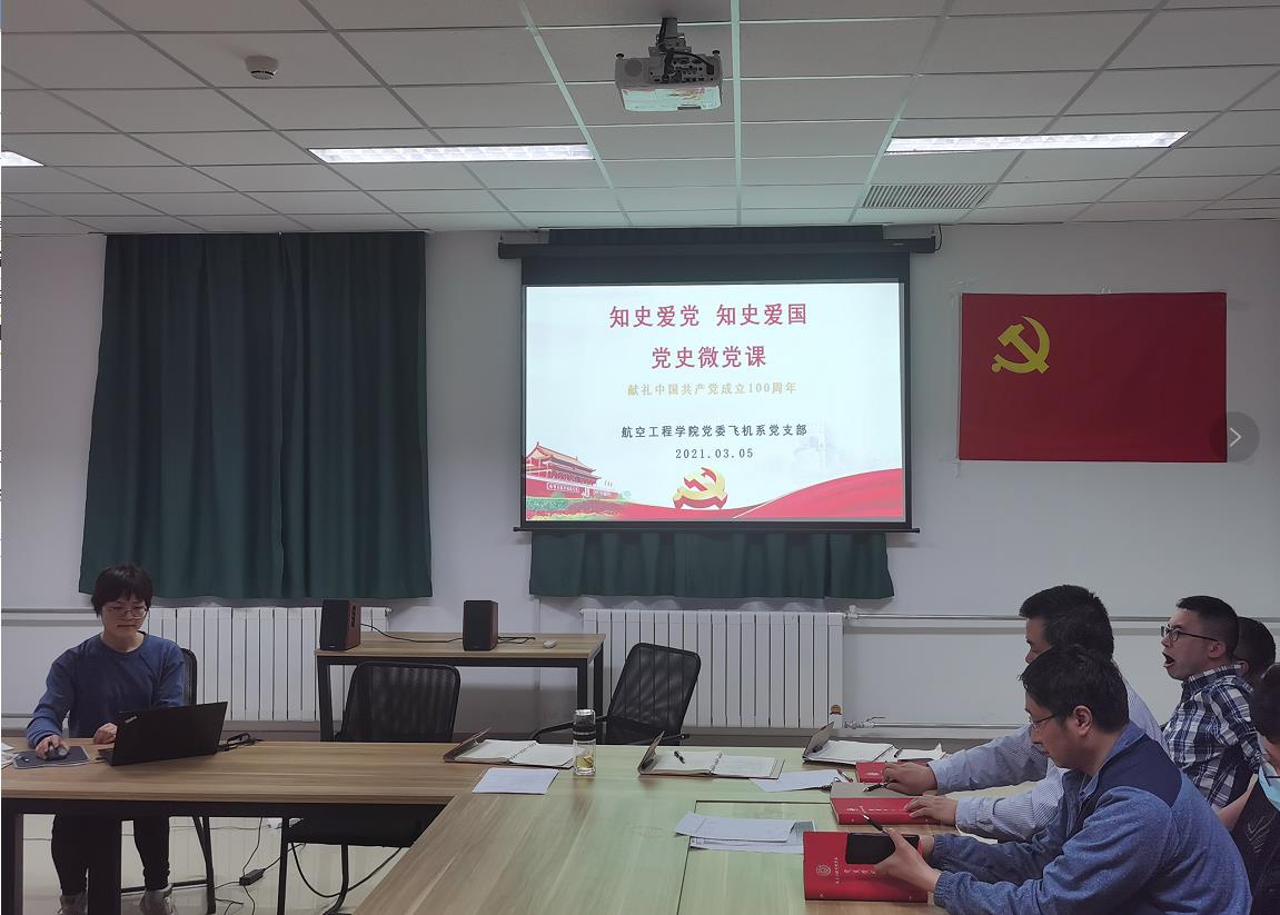 3月5日下午,飞机系党支部全体党员在北教2-3楼大会议室召开“知史爱党 知史爱国”主题党日活动。3月5日是周恩来总理诞辰123周年纪念日。飞机系党支部书记选取了周总理“为中华之崛起而读书”、领导指挥南昌起义、和平处置西安事变“逼蒋抗日”、“文革”中苦撑危局等历史片断以党课的形式向全体党员讲述了一代伟人的真情与风采,让大家对周总理至情至性、至高至圣、大智大勇、鞠躬尽瘁的一生有了进一步的了解。党员武涛在课后表示:“今天是周恩来总理的123周年诞辰,今年我们也即将迎来中国共产党百年华诞。百年来,以周总理为代表的中国共产党人披荆斩棘、砥砺前行,书写了世界瞩目的壮丽诗篇,我们这一代人一定会牢记嘱托,通过认真学习党史,把革命先辈的精神传承好、发展好,以优异的成绩迎接建党100周年。”