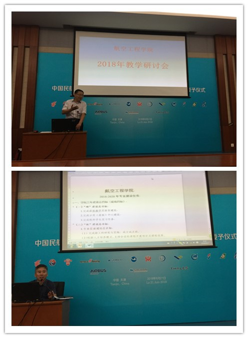 然后,孙毅刚院长做了题为“以新工科理念为指导,创新卓越机务工程师培养模式”的报告。报告分析了机务专业新工科建设与人才培养的行业背景;如何正确认识机务维修是“复杂工程问题”,通过我们的工作快速推进民航维修企业信息化、智能化进程,面向企业需求,创新卓越机务工程师培养模式任重而道远。