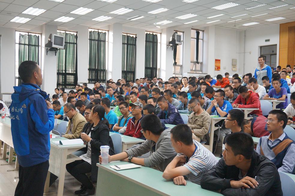 会上还请到了两名优秀的学生代表为同学们主讲创新创业经历。11级飞制卓越班毕业生李源同学详细讲述了航模队从无到有、从默默无闻到赫赫有名的故事。看着划过天空的航模,自信满满的队员,以及金光闪闪的奖牌,同学们无一不心潮澎湃,都默默地下定决心要在四年大学中一展身手。13级飞制卓越班的郭少青同学称自己为“狂热的航模爱好者”,他以自身的经历告诉大家,兴趣是最好的老师,不要怕失败,努力就有回报。