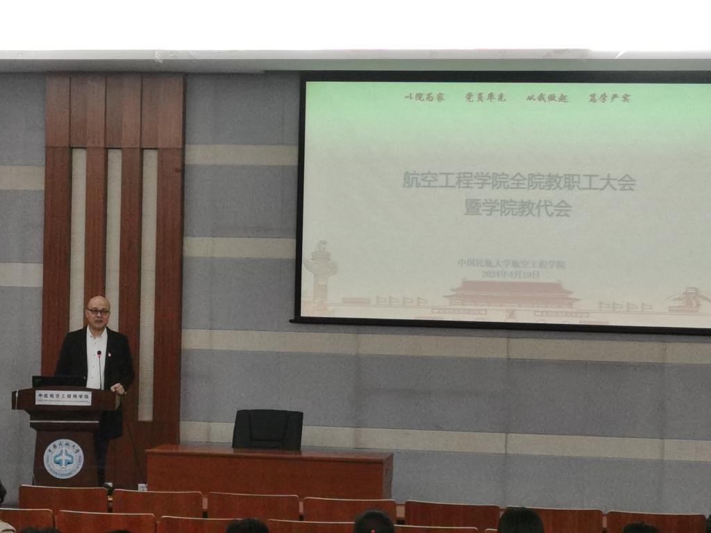 4月19日中午,航空工程学院在中欧楼101报告厅召开全院大会暨党纪学习教育动员会。会议由学院党委副书记主持,全院教职工参加。