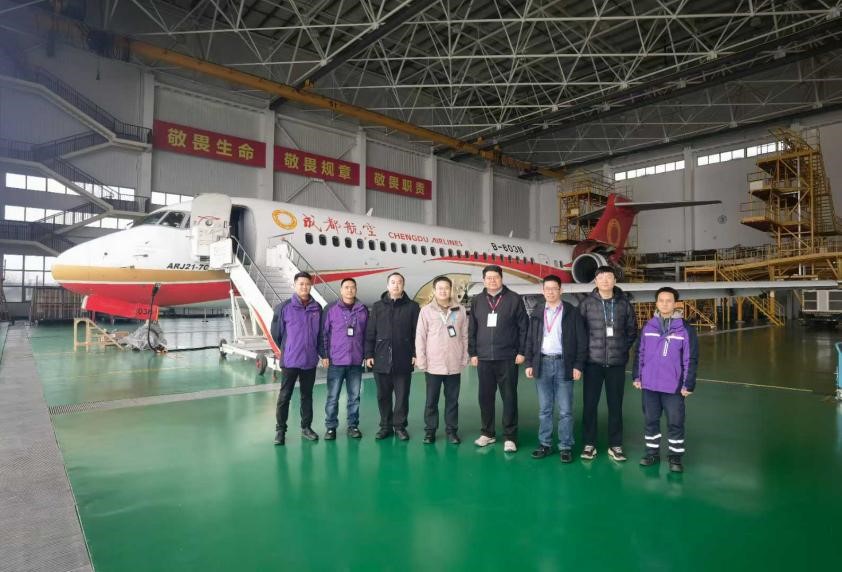 在成都航空公司维修工程部,我校校友曾家祥总经理陪同学院到访人员考察了国产支线客机C909定检工作,双方就C909运行维修和设计改进、预测性维修、共建项目式课程等开展了研讨。