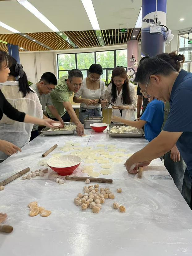活动特别设置了漆扇DIY环节,老师们亲手创作专属漆扇的同时也能感受到中华传统工艺魅力。活动最后,全体成员移步南一食堂共同参与集体包饺子活动,在温馨的集体劳动与分享中延续欢乐,进一步凝聚了“家”的温暖。