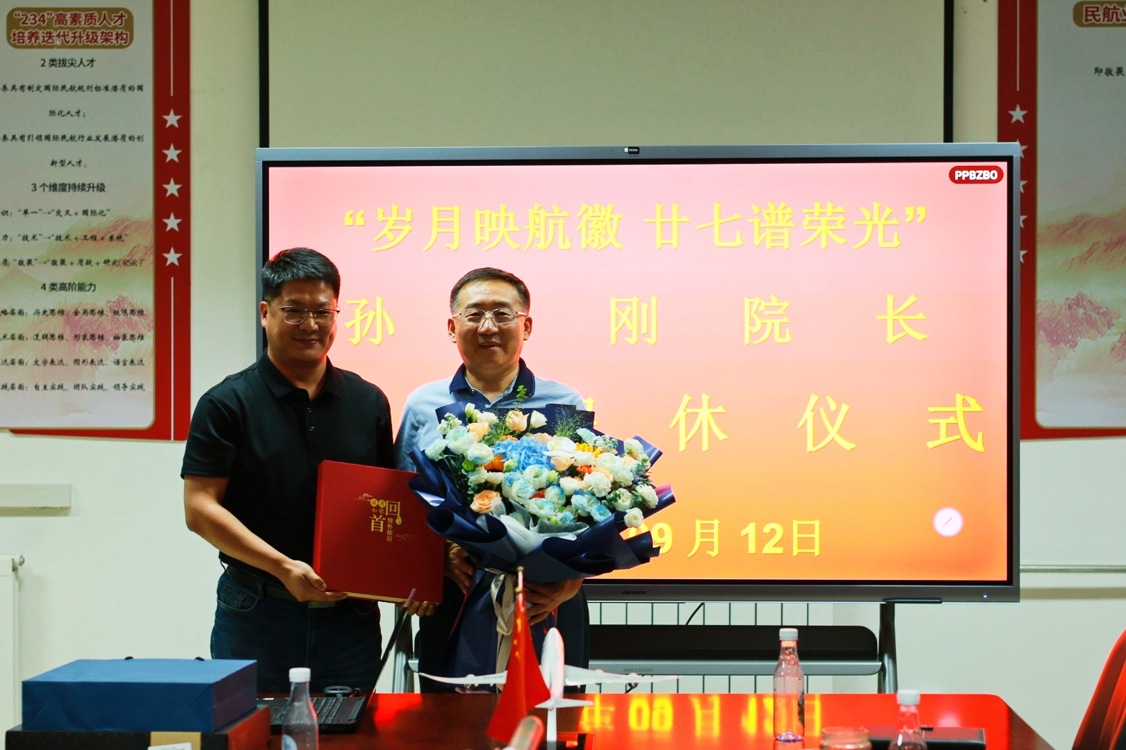9月12日下午,航空工程学院在北教二314会议室为孙毅刚教授举办“岁月映航徽 廿七谱荣光”荣退仪式,学院领导、师生代表齐聚一堂,共同见证这一感人时刻。仪式由学院院长主持。