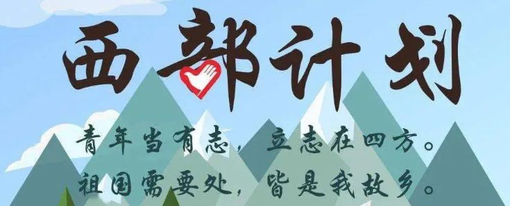 西部计划是由团中央、教育部、财政部、人力资源和社会保障部联合实施,针对普通高等学校应届毕业生或在读研究生到西部基层开展为期1至3年的志愿服务。该项计划从2003年开始实施,按照公开招募、自愿报名、组织选拔、集中派遣的方式,每年招募一定数量的普通高等学校应届毕业生或在读研究生,到西部基层开展为期1—3年的教育、卫生、农技、扶贫等志愿服务。