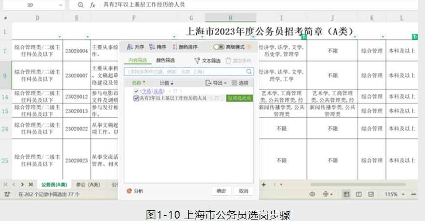 以上海市为例,经过学历、专业筛选之后,剩余岗位均要求“具有两年及以上的基层工作经历”,因此,无适合我院应届毕业生的岗位。如果参与了三支一扶、大学生村官,则符合报考条件。如下图所示: