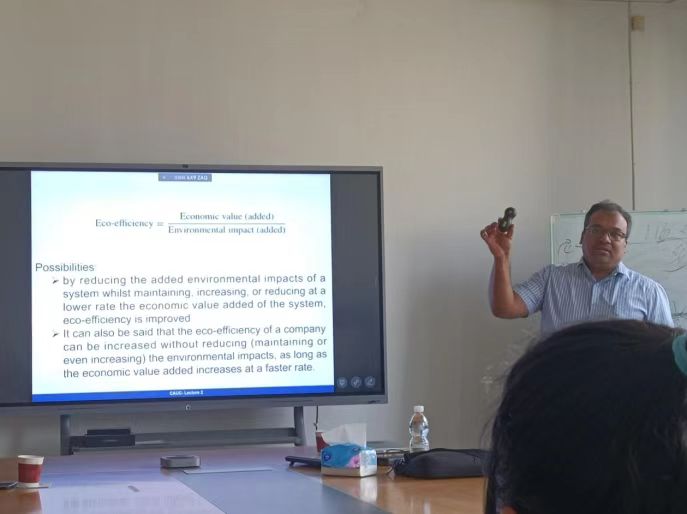 图3 Kannan Govindan教授以PPT遥控翻页笔为例讲解生态效率