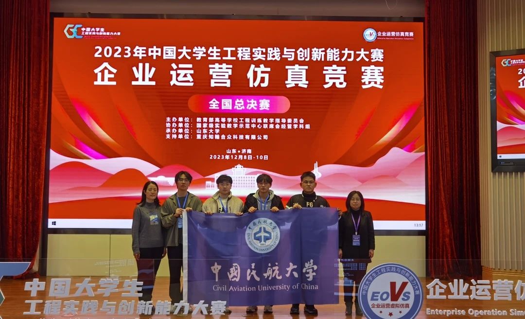近日,由教育部高等学校工程训练教学指导委员会主办的2023年中国大学生工程实践与创新能力大赛企业运营仿真竞赛全国总决赛圆满落幕。中国民航大学经济与管理学院关禹飞,余璐超,张帅龙,汪春栋所组成的队伍在马春芳老师,冯敏老师的指导下,斩获大赛金奖!