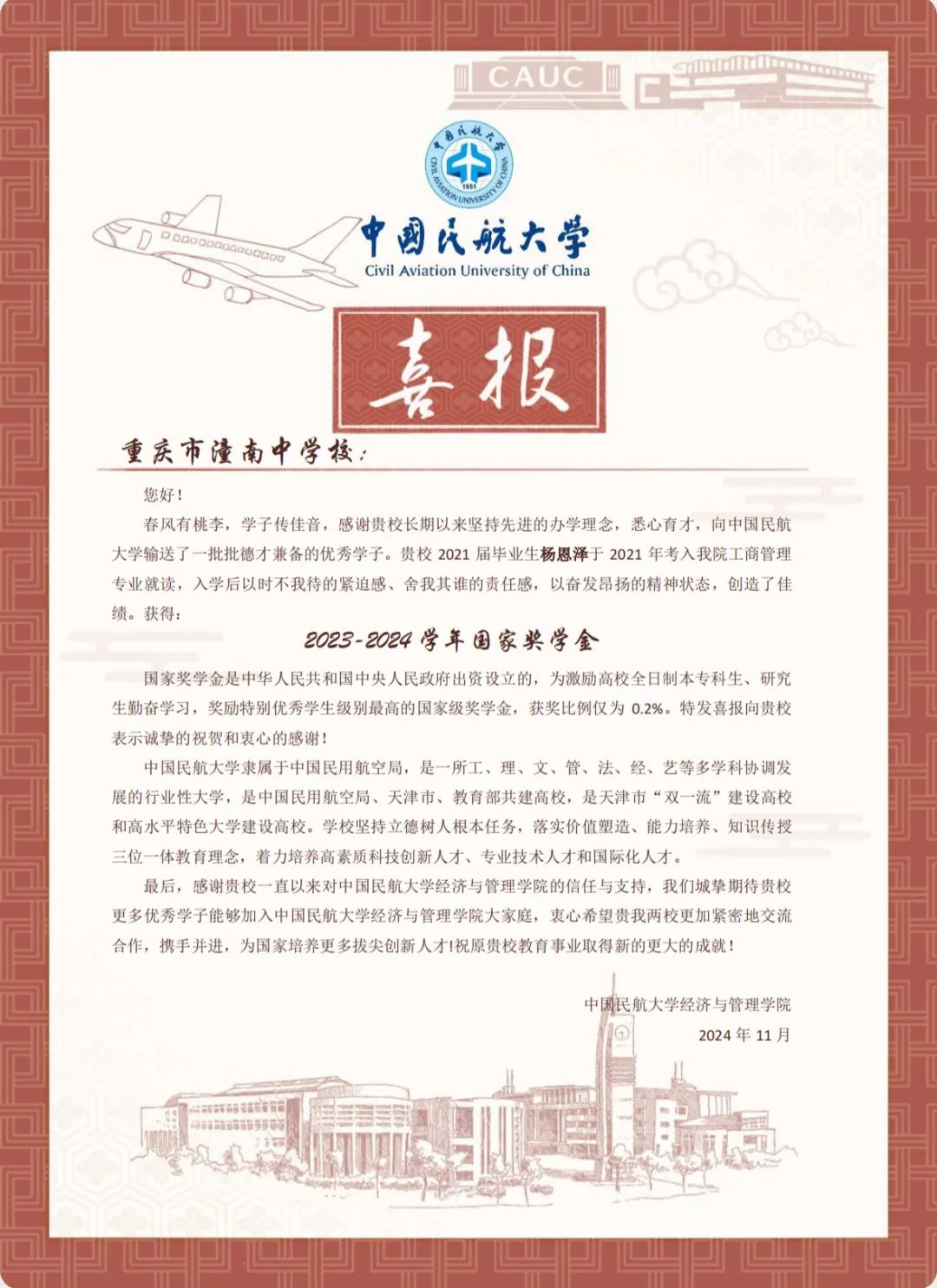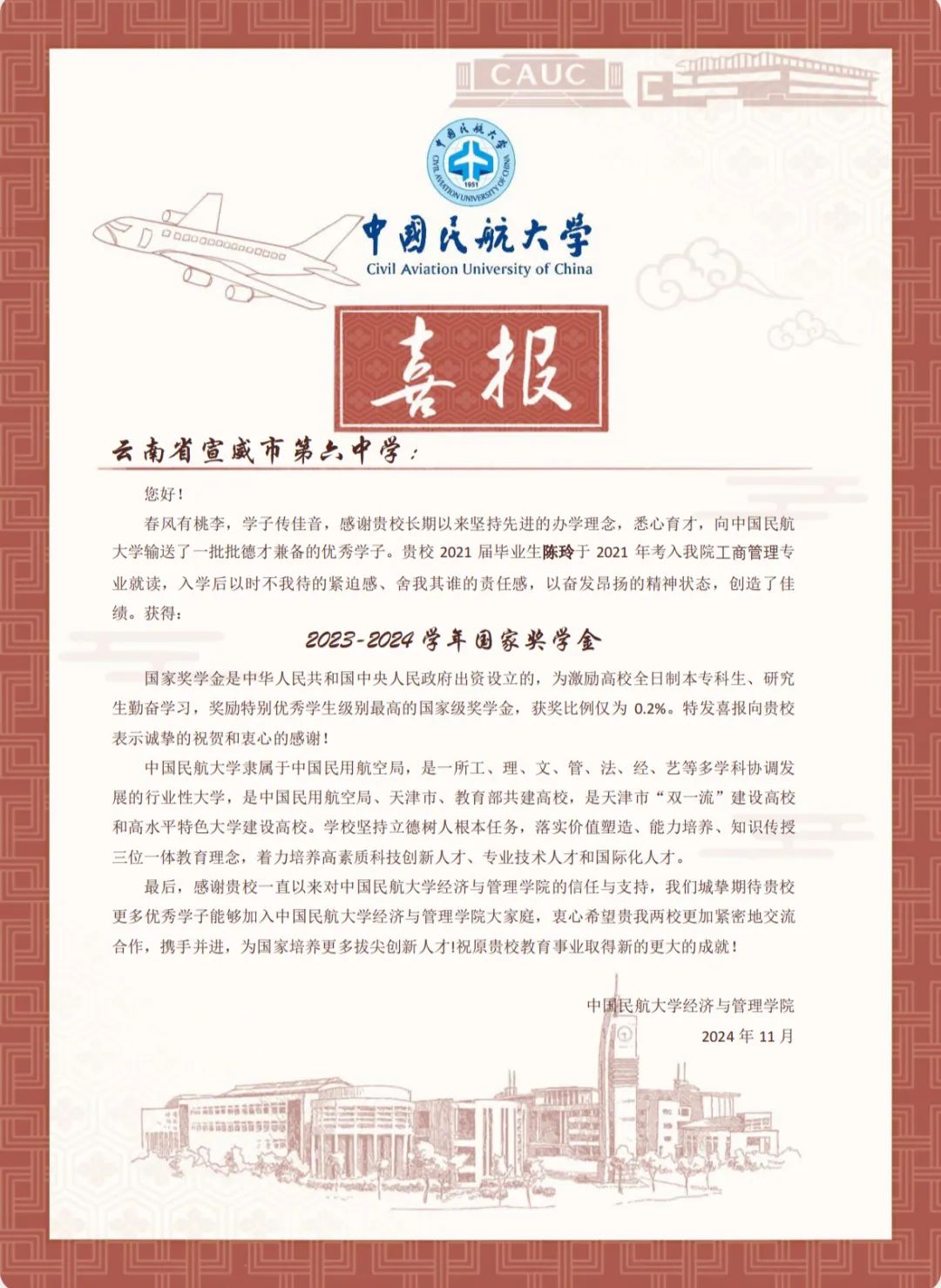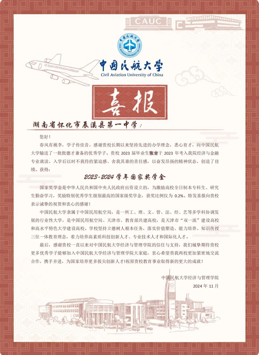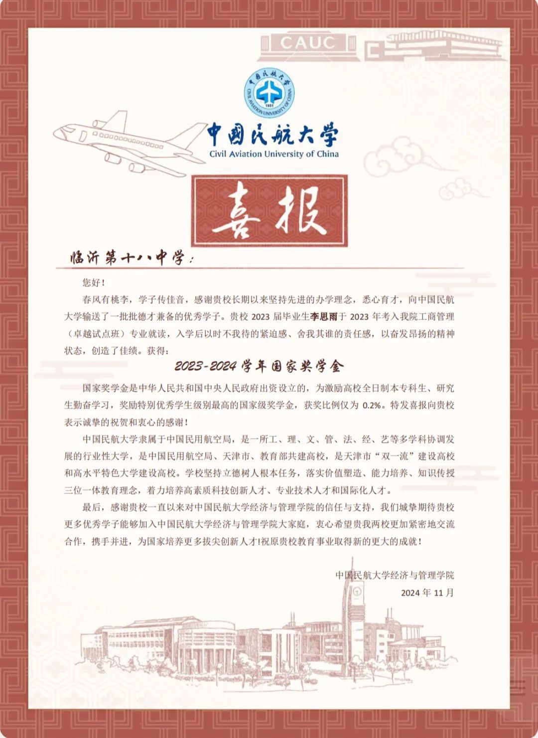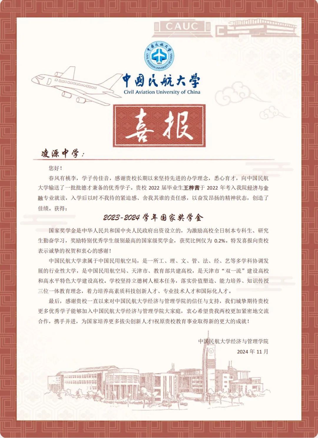 喜报虽小,却蕴含无上荣光。一封封喜报既承载着家庭的教育、学校的栽培、个人的努力,也承载着对家庭和高中母校的真诚问候和对学生成长的由衷喜悦,是学校资助育人成果的全面展现。喜报寄送活动是学校深化资助育人工作、强化家校协同育人的一项有效举措,架起了家校社互通“连心桥”。一直以来,我院坚持落实立德树人根本任务,坚持把资助、育人、服务贯穿始终,积极搭建家校社共育有效平台,探索完善发展型资助工作模式,丰富资助育人工作内涵,切实提升资助育人实效。今后,我院将坚持育人导向,将育人作为资助工作的出发点和落脚点,着力构建同频共振、同向发力、双向奔赴的高质量家校社携手共育长效机制,助力学生成长成才、全面发展。