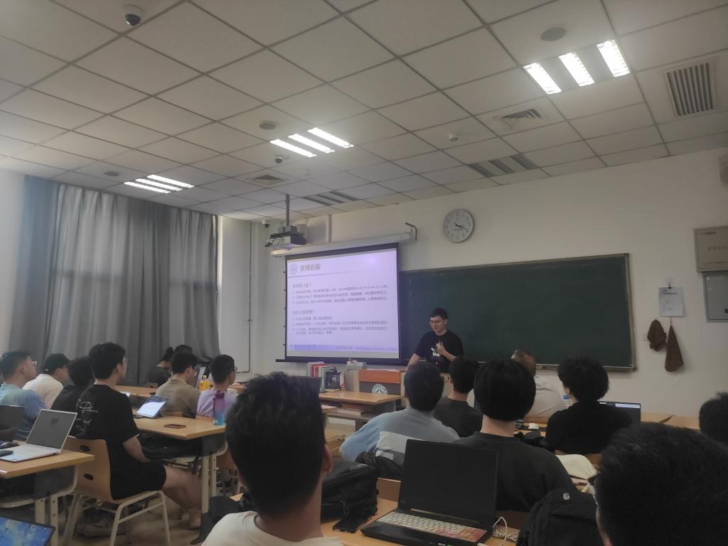 在分享环节,22级研究生代表周雨涵同学向大家传授了她在研究生阶段参与竞赛与撰写论文的宝贵经验。她强调了实践能力和创新思维在研究生学习中的重要性,并鼓励大家勇于尝试、不断挑战自我。随后,21级研究生代表徐启奥同学则分享了他在研究生阶段的科研规划与申博准备。他详细介绍了如何制定切实可行的科研计划,以及如何为申请博士学位做好充分准备。两位研究生代表的精彩分享赢得了在场同学们的阵阵掌声。