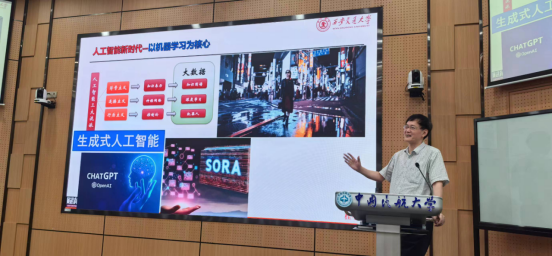 会议伊始,主持人计算机学院副院长热烈欢迎了桂小林教授的到来,并简要介绍了本次公开课的目的与意义。随后,教务处处长致开幕辞,他强调了教育创新对于提升教学质量的重要性,尤其是在AI技术日新月异的今天,把握机遇,将AI融入教学过程,是实现教育数智化的关键步骤。