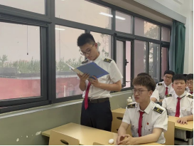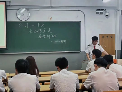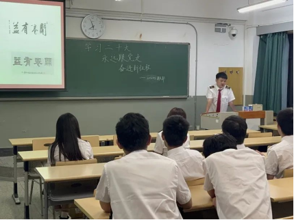 优秀团员代表王荐轩同学就党的二十大报告,结合自己的理解着重讲解了关于“科技、开放、环境、经济、法治”五个方面的知识,带领班级团员和青年再次深入贯彻落实党的二十大精神,提升同学们的责任感和使命感。