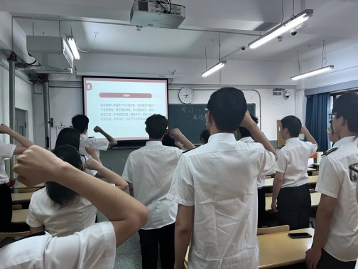 接着,由团支书赵广鑫带领同学们重温入团誓词,全体团员举起右手庄严宣誓,慷慨激昂的誓言坚定了青年们为实现共产主义而奋斗的信念,体现了与时俱进,恪守承诺的精神品格。此时此刻,同学们感受到了身为团员的自豪感。