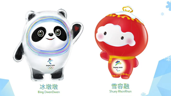 冰墩墩:冰墩墩将熊猫形象与富有超能量的冰晶外壳相结合,头部外壳造型取自冰雪运动头盔,装饰彩色光环,整体形象酷似航天员,寓意创造非凡、探索未来,体现了追求卓越、引领时代,以及面向未来的无限可能。