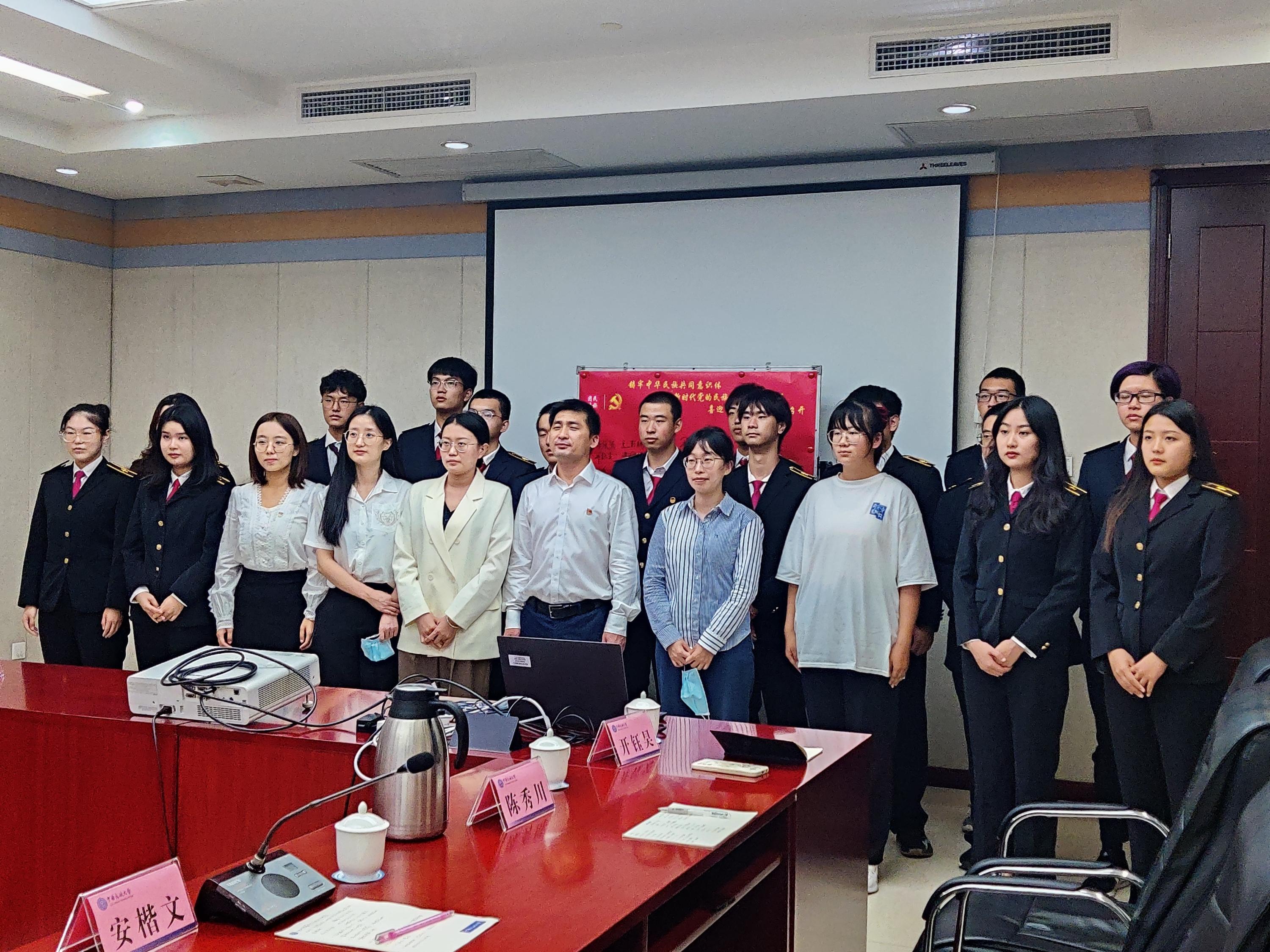 大会伊始,全体师生共唱国歌大家声音洪亮,出了对祖国的热爱,出了对民族大团结的赤诚之心。大会第二项由王利辉致辞,王利辉向在座的师生宣讲了党关于加强和改进民族工作的重要思想,宣贯了习近平总书记做好新时代党的民族工作,就是要把铸牢中华民族共同体意识作为党的民族工作的主线这一重要论断,号召在座的民族师生代表,追求进步,更加自信的扛起自己所肩负的责任为实现中华民族伟大复兴的中国梦而奋斗。大会第三项,大家共同观看了纪录片《民族歌舞70载》,加深了师生们对这支凝聚新时代奋进力量构筑中华民族共有精神家园中央民族歌舞团的了解。观看《民族歌舞70载》之后,师生座谈会在热烈氛围下展开。少数民族学生代表周雨晗同学谈到,自己的家乡吉林省长春市第七批援藏工作组进藏的故事,体现了我国少数民族脱贫成果以及我国在民族团结方面做出的改变,以小见大,描绘了各民族手足同亲,守望相助的美好蓝图汉族学生代表付泽昊同学谈到,汉族的历史贯穿古今,源远流长,是中华大地上最重要的组成部分,从传统节日仪式,习俗活动和饮食习惯三个方面展示汉族文化的魅力少数民族教师代表朴敏楠老师谈到,当今世界正处于百年未有之大变局,民族团结一家亲,作为新一代的青年,更应该把个人命运同国家联系在一起,团结起来,心连心,投身到民族团结的伟大建设中李海丰举出中国历史上多个民族团结的例子以及我国制定的民族政策,引导大学生应坚决维护民族团结,做践行中华民族共同体意识的时代先锋。会议最后,开展了石榴籽紧紧相抱,民族团结一家亲的签名活动,以此来呼吁大家共同做民族团结的宣传者拥护者践行者。
