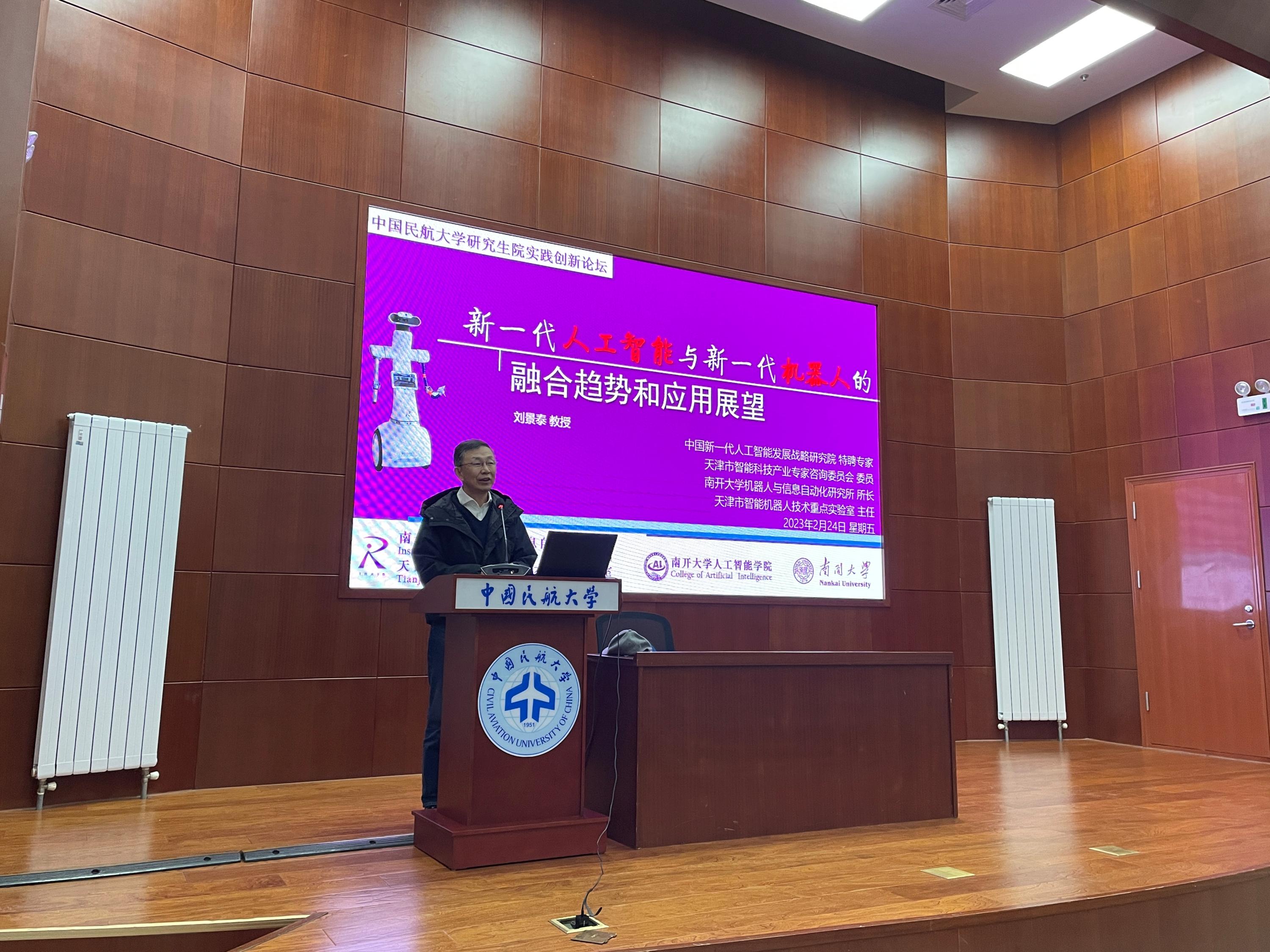 2月24日下午2时,由中国民航大学研究生院主办,计算机科学与技术学院承办的《新一代人工智能与新一代机器人的融合趋势》讲座在南校区圆形报告厅如期举行。