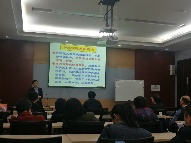 为深入学习贯彻全国教育大会精神,践行“立德树人”使命,落实好习近平总书记在近期召开的教师座谈会上提出的“用好课堂教学这个主渠道”的要求,使教师在第一课堂教授专业知识的同时潜移默化融入“课程思政”的内涵,共同探讨专业课“课程思政”的方法、技巧,引导教师立足三尺讲台,教书育人,担负起学生成长成才引路人的职责,计算机学院于3月29日下午邀请中山大学生命科学学院教授、博士生导师、国家级教学名师王金发来校做“课程思政”专题讲座。计算机学院班子成员及全体教职工参加。