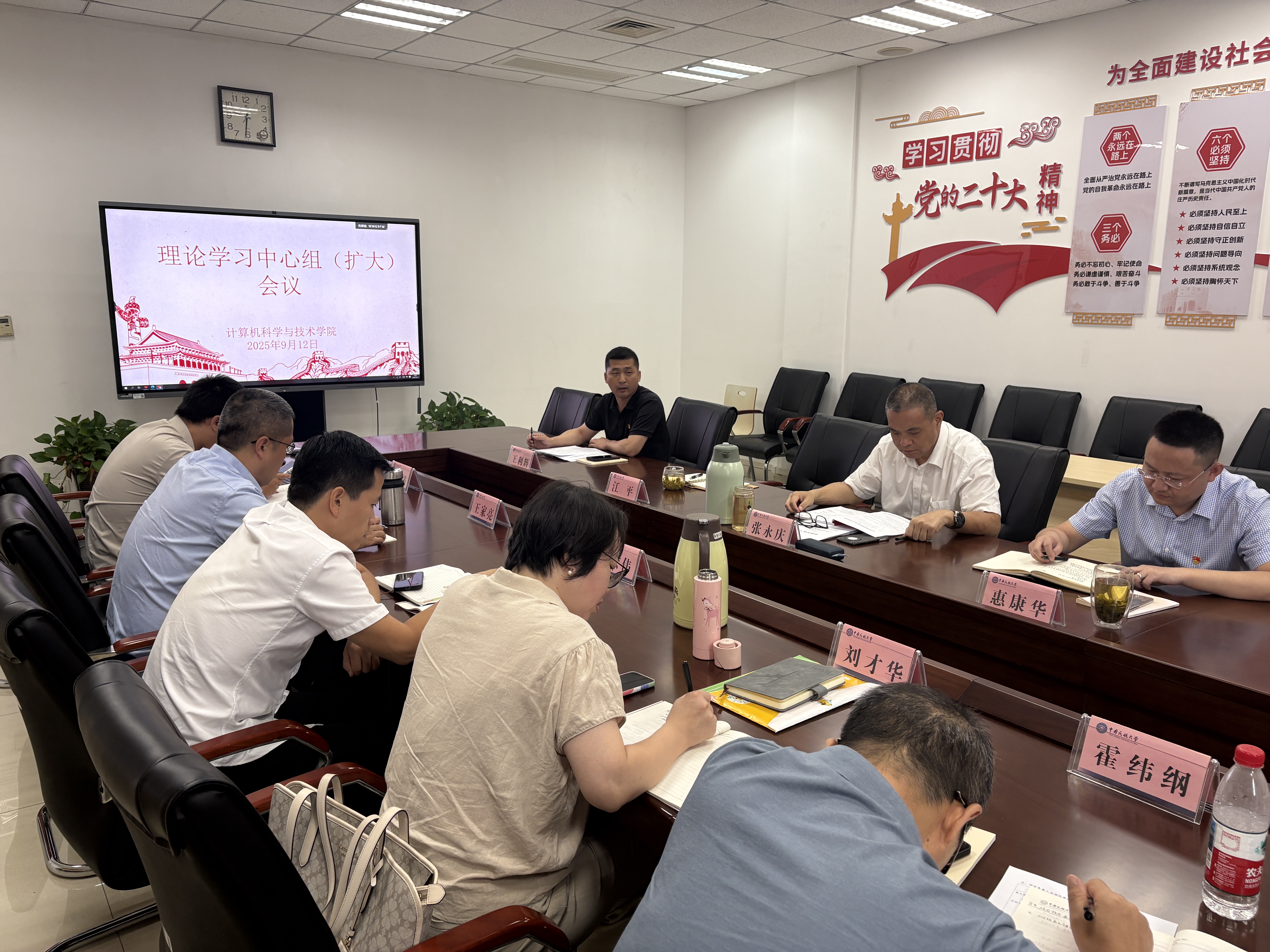 9月13日上午,计算机学院党委举行理论学习中心组扩大会议,围绕“抓落实、守安全、谋发展”这一主题,深入开展学习研讨与工作交流,旨在统一思想、凝聚共识,为学院新学期各项事业高质量发展奠定坚实思想基础。