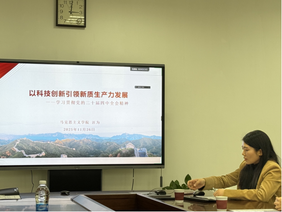 11月26日下午,为深入学习贯彻党的二十届四中全会精神,落实学校相关部署,人工智能学院本科生党支部组织开展主题党日活动,马克思主义学院汪为老师受邀授课,人工智能学院本科生党支部全体成员与安全学院学生党支部代表共同参加。