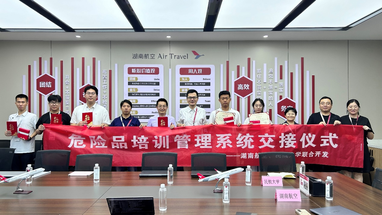 近日,中国民航大学计算机科学与技术学院与湖南航空股份有限公司(以下简称“湖南航空”)携手完成危险品培训管理系统研发,并于8月15日在湖南航空行政中心举行“危险品培训管理系统部署及交接仪式”。 该系统正式由研发团队移交至湖南航空投入运行,为危险品培训管理注入数字化、智能化新动力。
