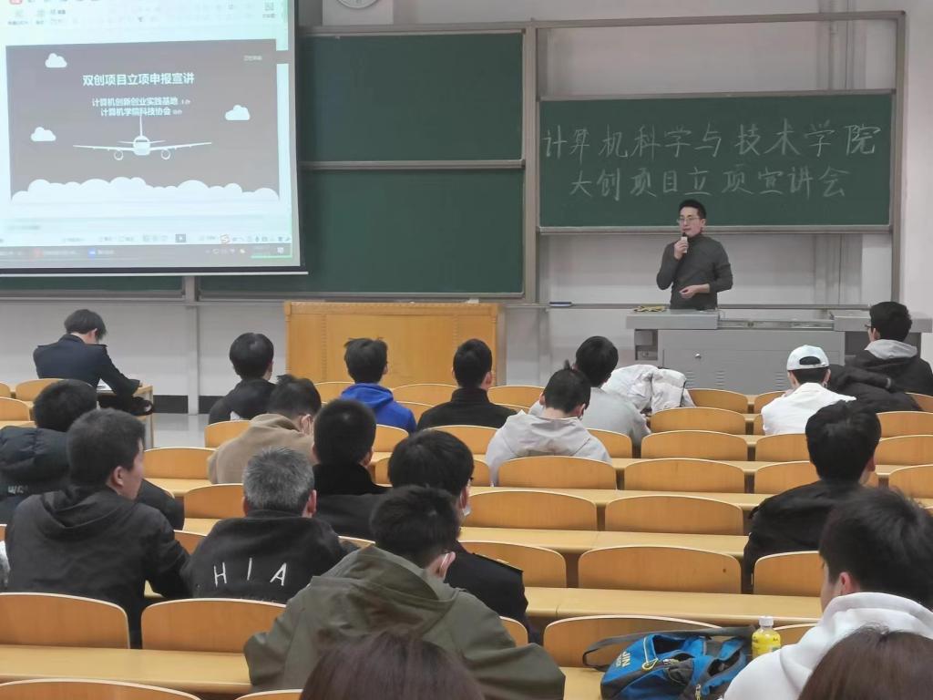 2023年3月5日下午2点,大学生创新创业项目立项申报宣讲会于南教3-111举行。本次宣讲会由计算机创新创业实践基地主办、计算机科技协会协办,吸引了我校近百名同学的积极参与。