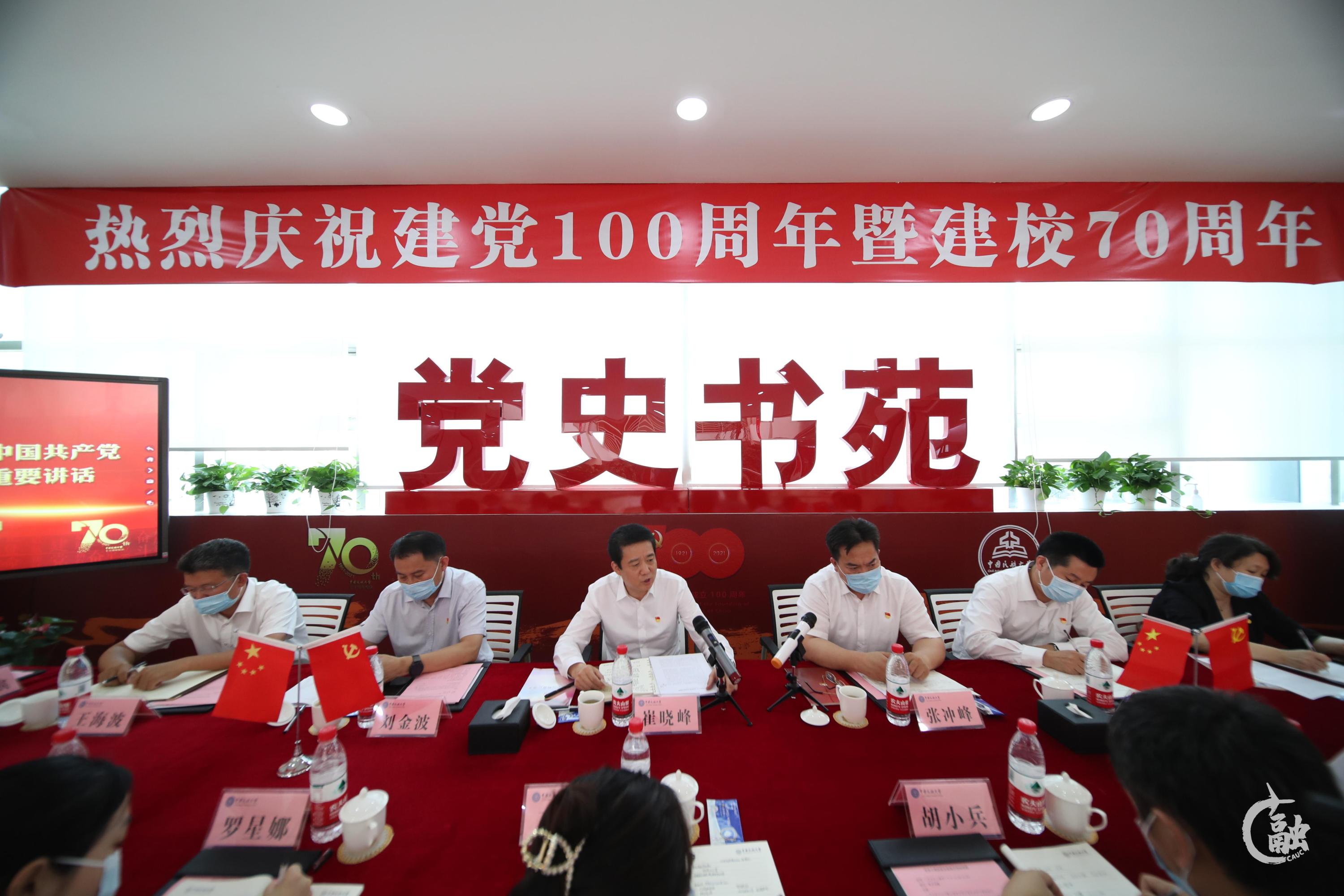 本网讯 7月8日,民航局党组成员、副局长崔晓峰深入党支部工作联系点——中国民航大学安全科学与工程学院安全工程系党支部,参加主题党日活动,与支部成员在图书馆“党史书苑”共同学习习近平总书记在庆祝中国共产党成立100周年大会上的重要讲话精神。民航局人教司司长刘金波、政工办主任张冲峰、综合司副司长王海波、人教司副司长张静,中国民航大学党委书记曹胜利,民航局综合司、人教司、政工办,学校党办、组织部、安全学院相关负责人以及安全工程系党支部12名党员参加党日活动。